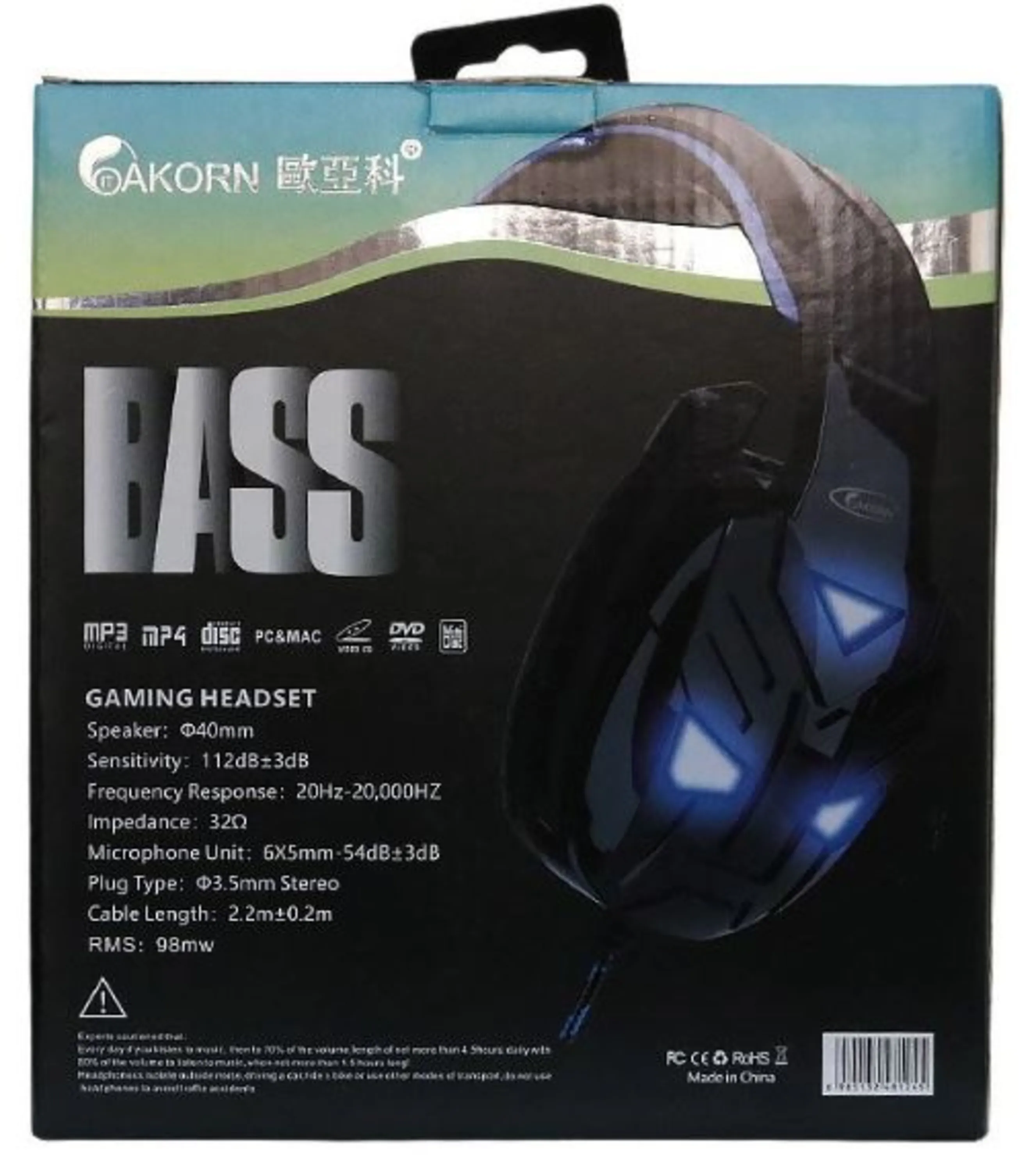 عنوان محصول : هدست گیمینگ AKORN OK6000 Gaming Headset - Blue