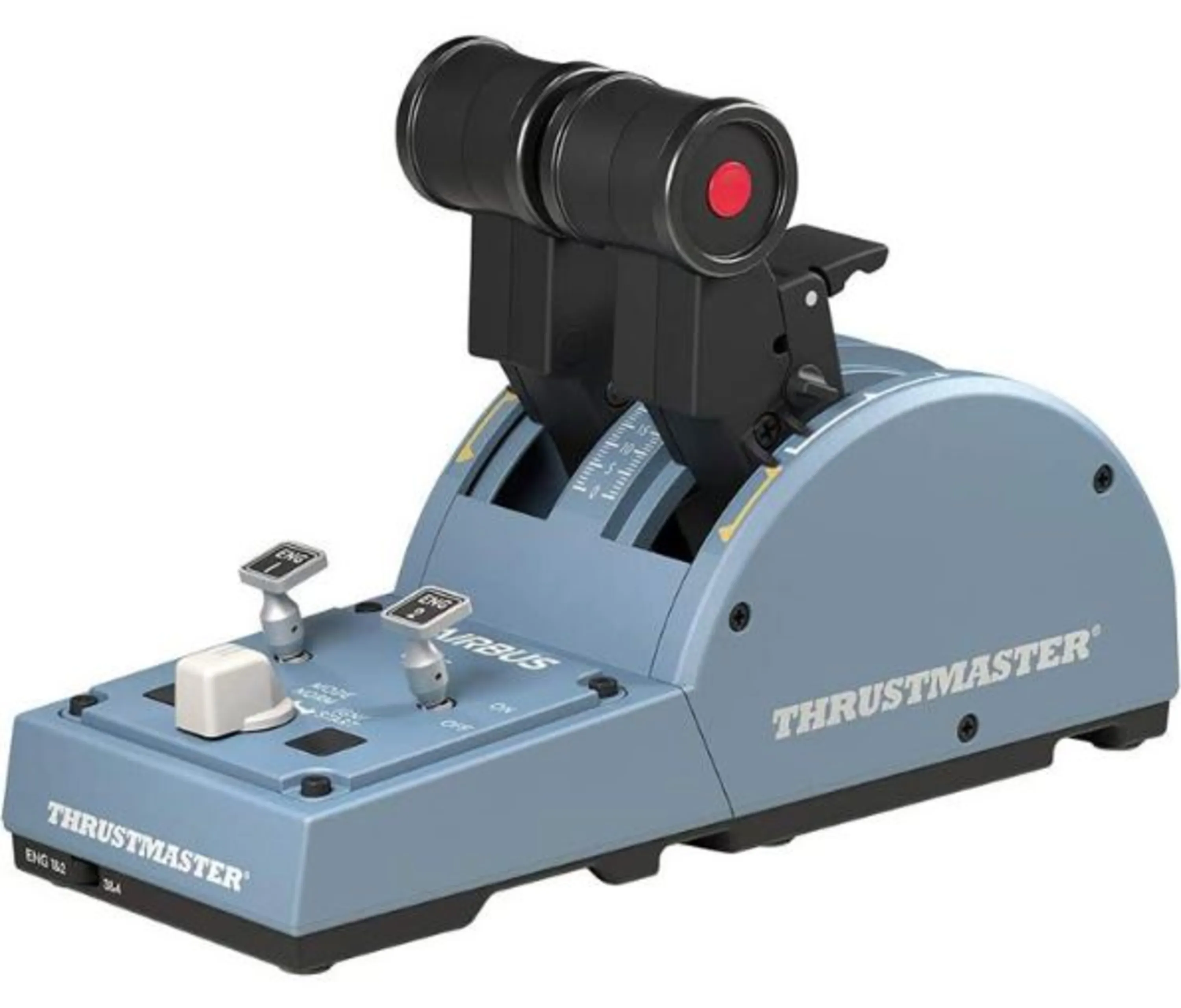 کوادران Thrustmaster TCA مدل ایرباس، شامل دو عدد تراتل برای کنترل و هدایت هواپیما در بازیهای کامپیوتری است که با نظارت ایرباس با دقت بسیار زیادی شبیهسازی شده است.