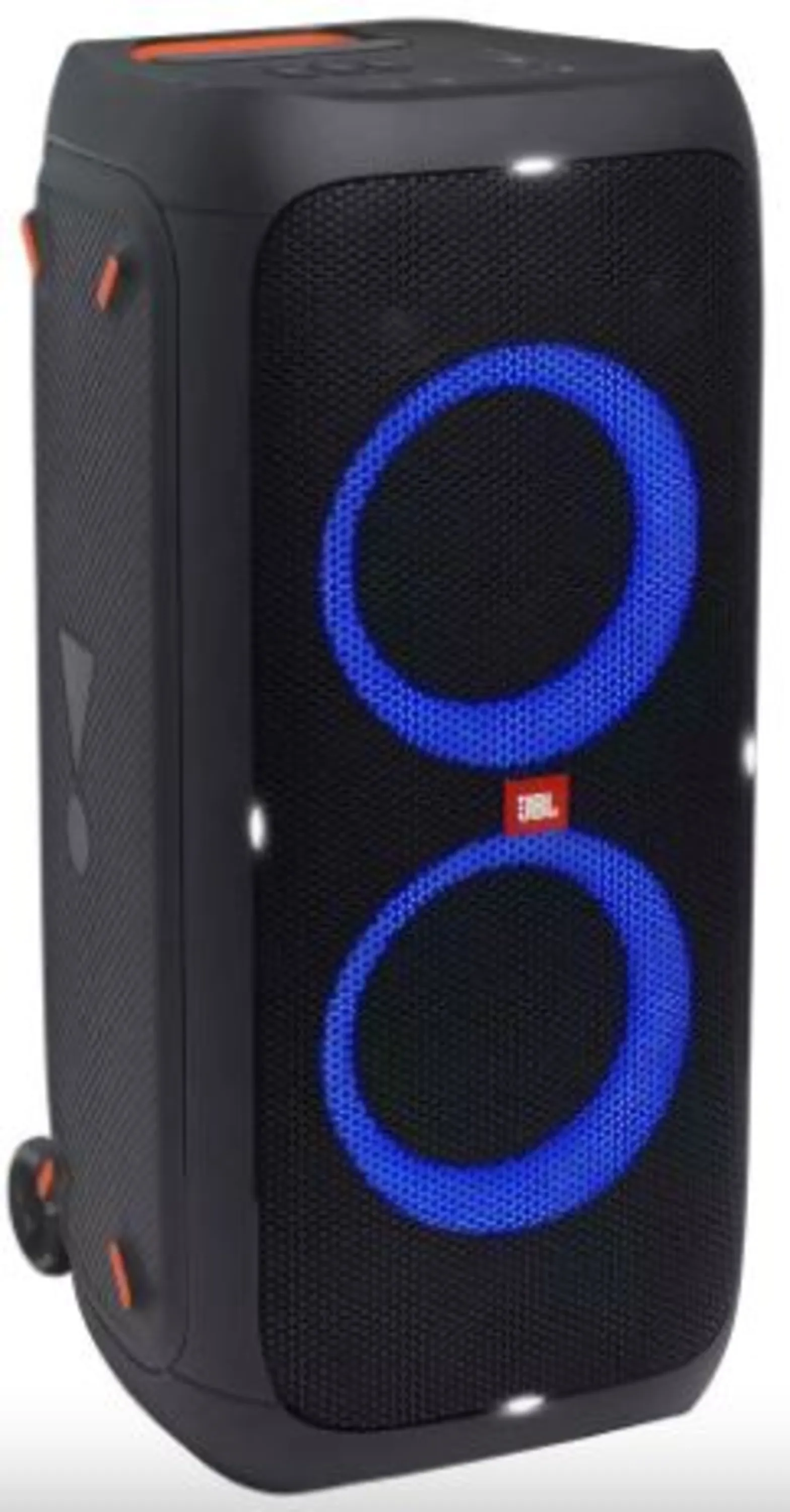 اسپیکر جی بی ال پارتی باکس JBL Partybox 310 با حجم صدای بالا، رقص نور و قدرت باورنکردنی 240 وات گزینه بسیار عالی برای مهمانی و حتی سفرهای آفرودی است. تسل جدید اسپیکر پارتی باکس جی بی ال به دسته و تایر مجهز شده و حمل نقل آن آسان شده است. با ماندگاری چشمگیر 18 ساعت باتری ، خیال شما را بابت این مورد راحت میکند. برای پخش موسیقی از گوشی خود را از طریق بلوتوث یا کابل AUX به اسپیکر متصل کنید. همچنین از طریق فلش مموری USB امکان پخش موسیقی دارد.