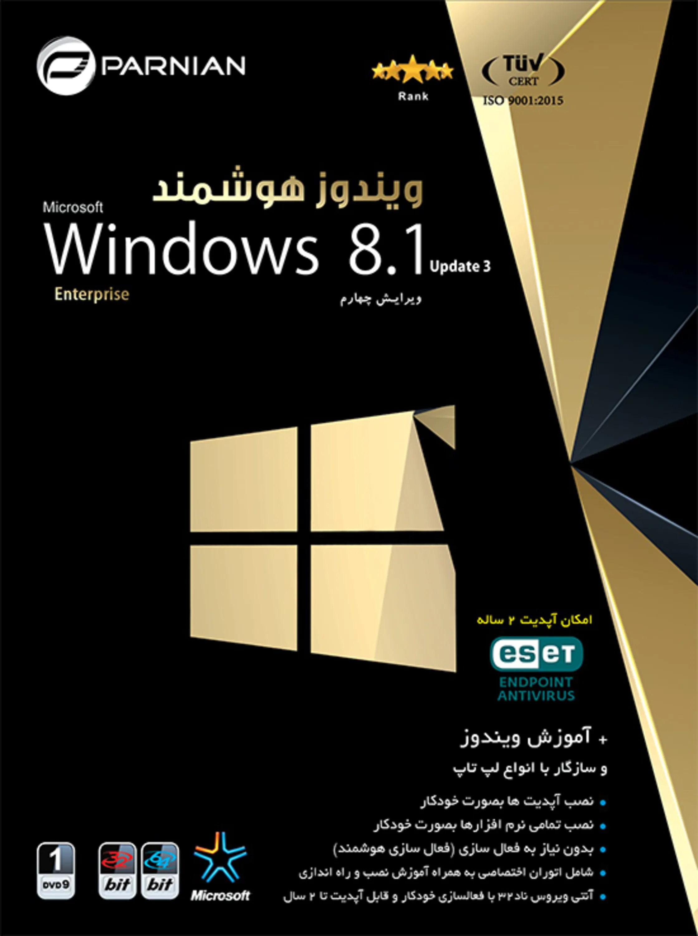 آخرین نسخه ویندوز 8.1 آپدیت 3 ارائه شده توسط شرکت مایکروسافت ، نصب پیش فرض نرم افزار مهم و کاربردی اینترنت اکسپلورر 11 ، به همراه آخرین آپدیت ها و NET Framework 3.5. ، سریع تر شدن بوت ویندوز 8.1 به میزان 30 درصد بیشتر ، دی وی دی Bootable جهت نصب ویـندوز از طـریق بوت ، بدون محدودیت نصب، محدودیت زمانی و امکان آپدیت ویندوز از طریق اینترنت بصورت مستقیم از سایت مایکروسافت و...