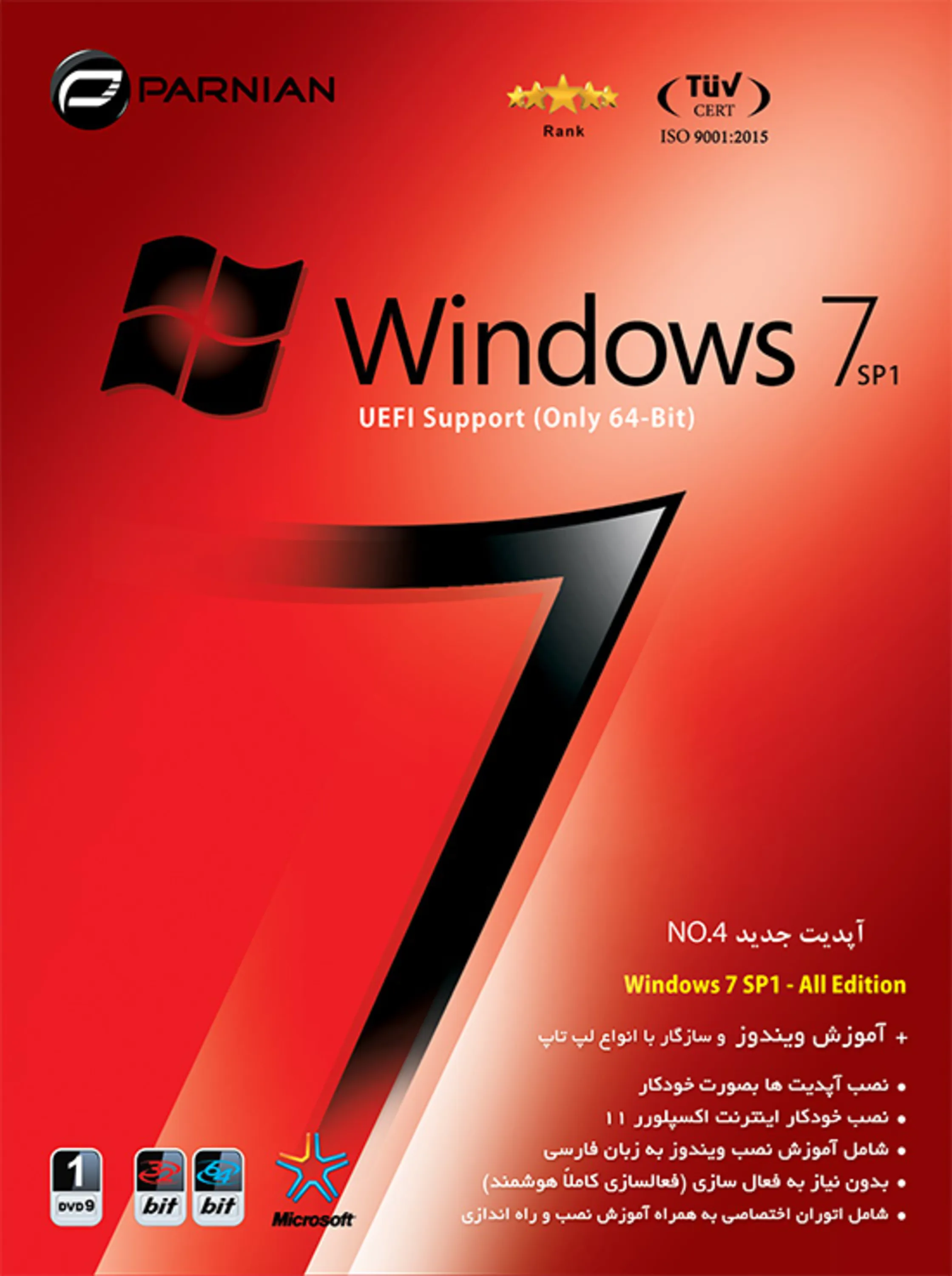 عنوان محصول : ویندوز 7 آپدیت جدید Windows 7 SP1 DVD9 (UEFI Support)
