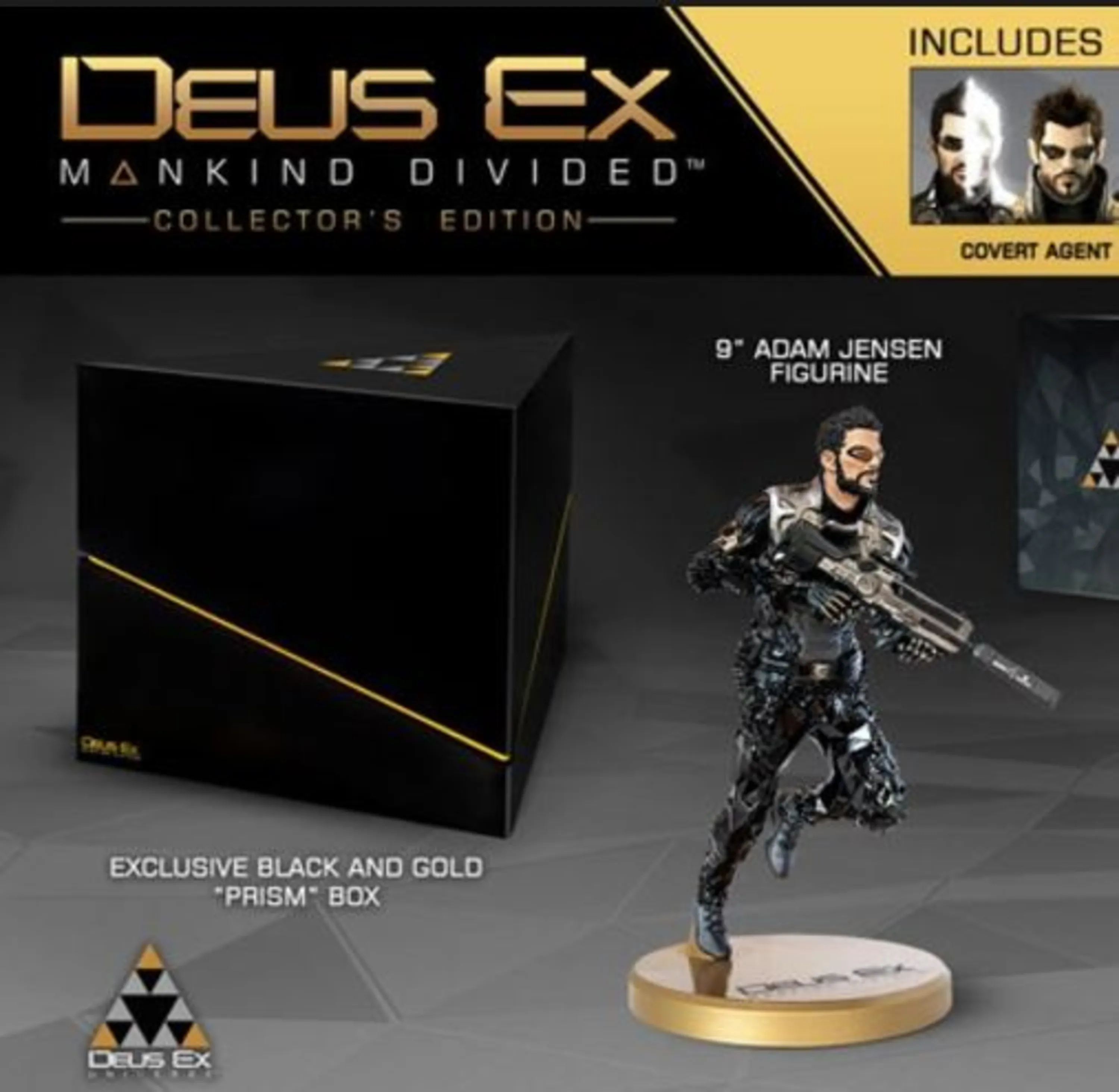 CE includes Day 1 Edition Game with: Classic, Enforcer and Intruder In-Game DLC Packs, Digital Novella, Digital Comic Book, Extra in-game mission, Digital Artbook and Digital OST Sampler plus 9" Adam Jensen Figurine, 48 pg Titan Art Book and LE Steel book