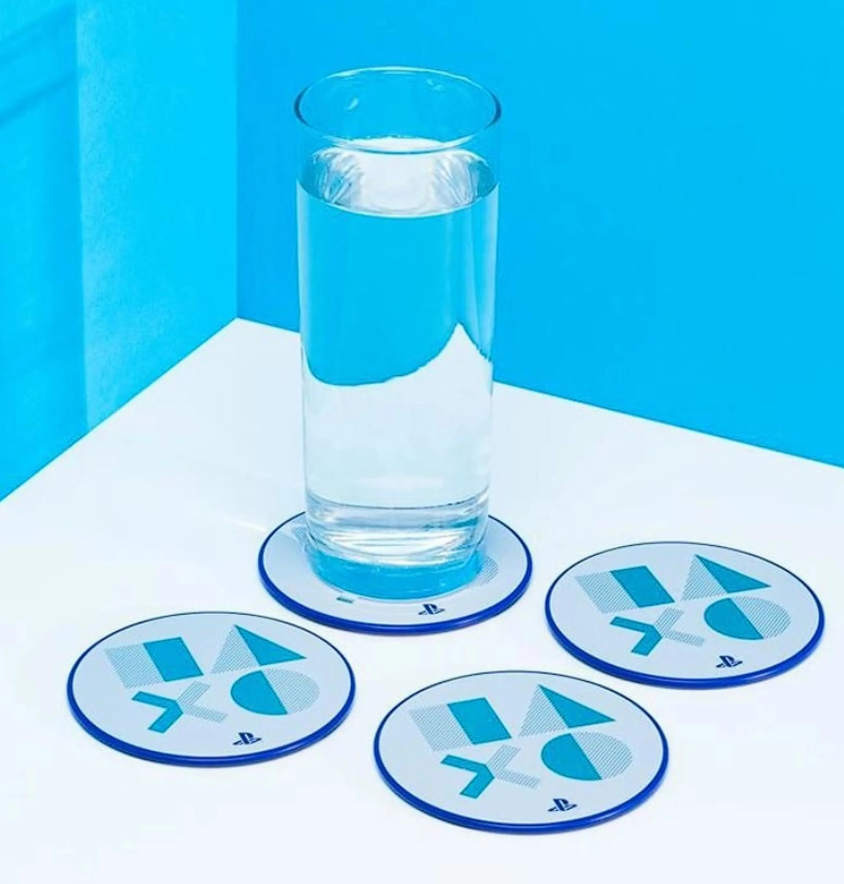 هر یک از چهار عدد زیر لیوانی طرح PS5 با دکمه های اکشن Dual Sense طراحی شده اند که شامل مثلث، دایره، ضربدر و مربع می شود. رنگ ها سفید هستند و یک لوگوی آبی رنگ پلی استیشن نیز در این محصول وجود دارد که به صورت برجسته طراحی شده است. پس می توان گفت که طراحی بسیار دقیقی دارند.