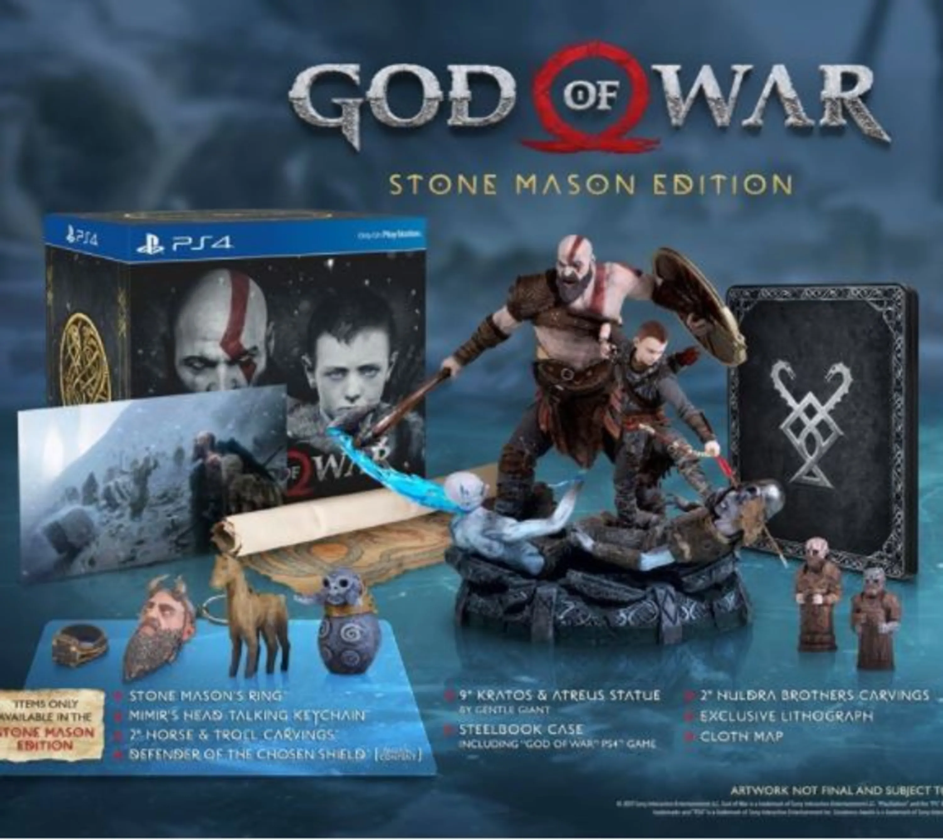 این نسخه ویژه Stone Mason Edition نام دارد و در کنار بازی اصلی شامل چندین موارد منحصربهفرد است. در این نسخه مجسمه 9 اینچی کریتوس و پسرش آترئوس ساخته جِنتل جاینت، قاب فلزی محدود بازی، کَندهکاری برادران هولدرا، یک لیتوگرافی منحصربهفرد، یک نقشهی پارچهای، حلقه Stone Mason، جاسوئیچی سخنگوی سر میمیر (غولی در میان گروهی از خدایان که به دانش و خرد شهره بود و از چاه الهام و آگاهی واقع در یوتونهایم نگهبانی میکرد؛ چاهی که اودین با نوشیدن آب آن قدرت الهام و آگاهی از آینده را به دست آورد و به ناگزیر یکی از چشمانش را از دست داد)، و دو کندهکاری اسب و ترول به چشم میخورد.