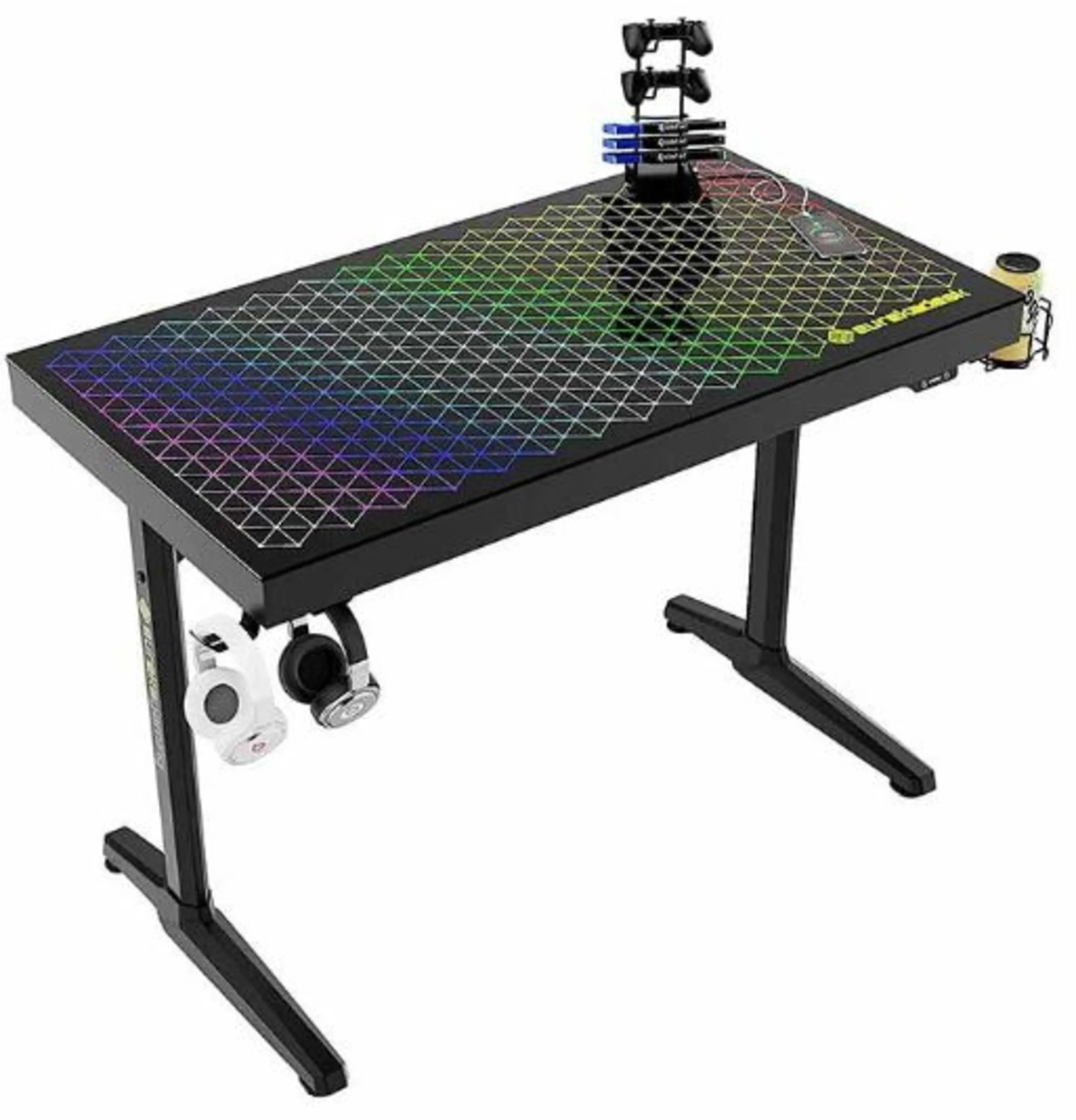 میز گیمینگ یوریکا Eureka GTG-I43 RGB تمامی ویژگیهای میزهای گیمینگ خاص و ردهبالا را دارد. این محصول برند یوریکا وضعیت RGB اتاقتان را بهبود میبخشد و کاری میکند که بیش از پیش مایل به ماندن در اتاقگیمینگ باشید و در آن به بازی مشغول شوید. در ادامه به بررسی ویژگیهای این میز گیمینگ حرفهای خواهیم پرداخت، اما اینجا در حد اشاره باید گفت که این میز گیمینگ یوریکا از حدود 200 حالت RGB در چند قسمت پشتیبانی میکند و فضایی جذابتر از قبل در اتاق گیمینگتان رقم میزند.