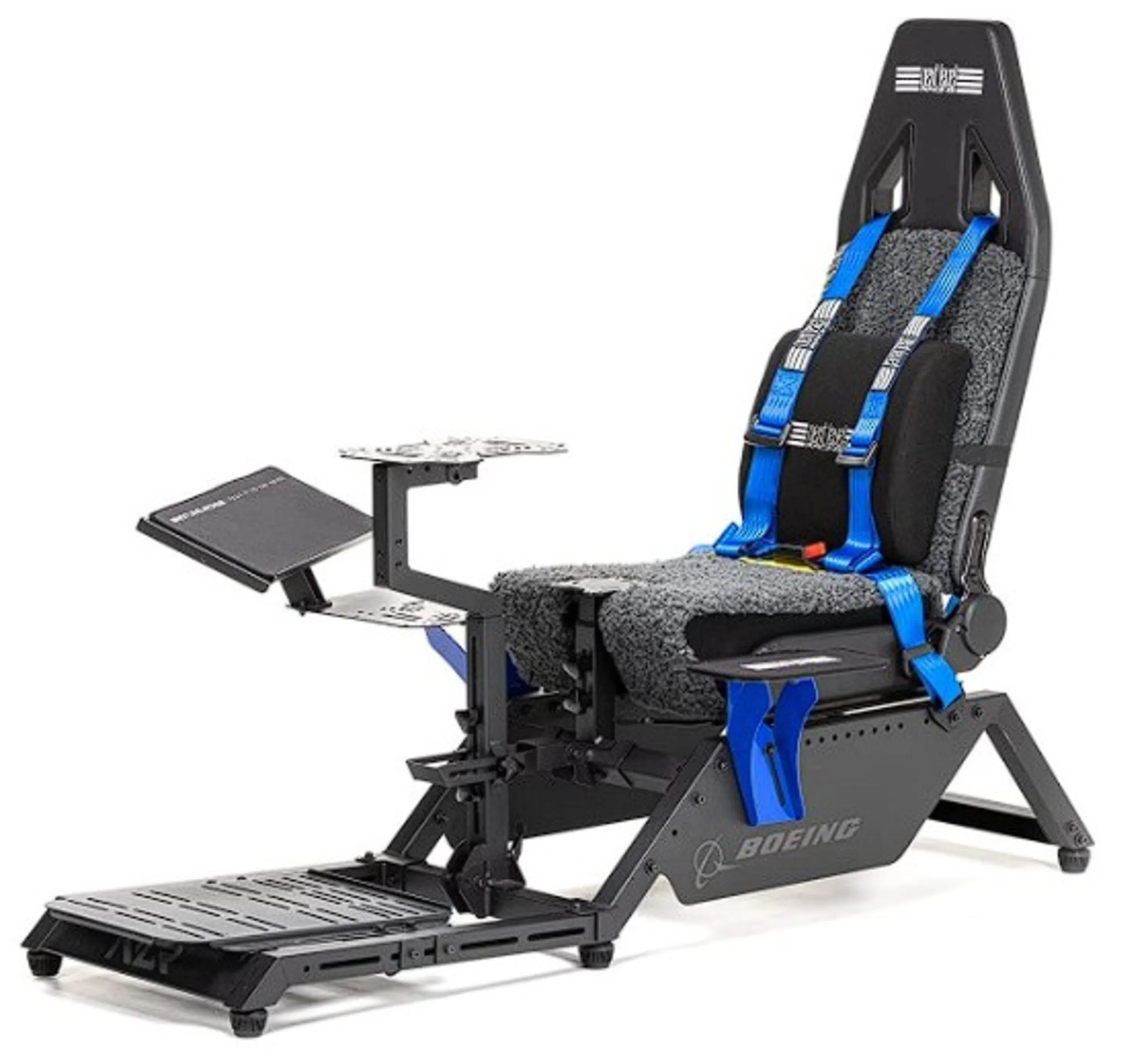 این صندلی نه فقط با الهام از هواپیماهای مسافربری بوئینگ ساخته شده است، بلکه برای طراحی آن، از مهندسان بوئینگ مشاوره گرفته شده است تا نزدیکترین تجربه به یک هواپیمای بوئینگ را داشته باشید. روکش صندلی از پشم فابریک مصنوعی ساخته شده است که حس و حال نشستن روی صندلی بوئینگ را تداعی میکند. همچنین، این صندلی با همکاری کمپانی Thrustmaster طراحی شده است تا تجهیزات شبیهساز هواپیمای بوئینگ این کمپانی بهترین سازگاری را داشته باشد.