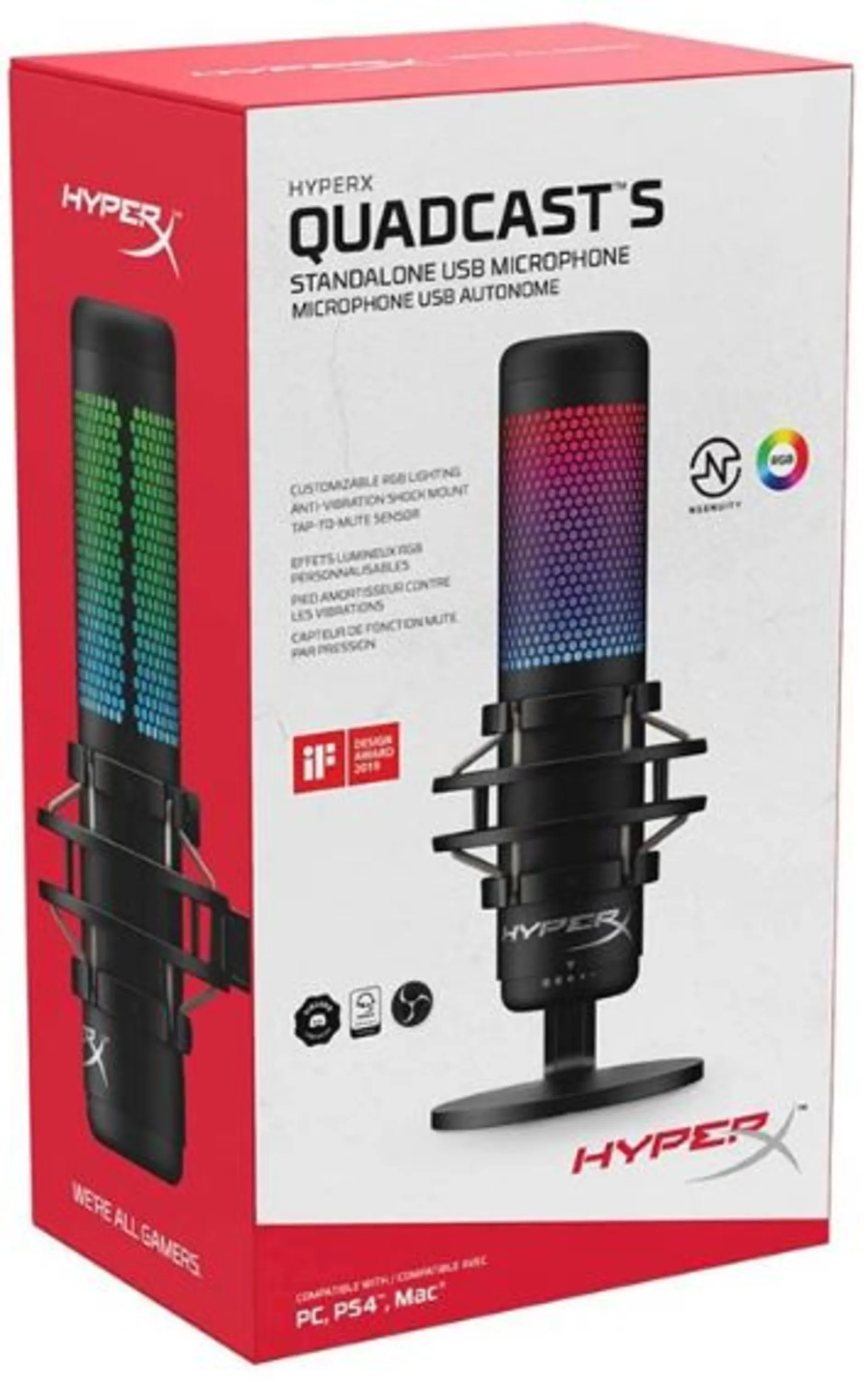 ویژگی های ظاهری میکروفون HyperX QuadCast S
