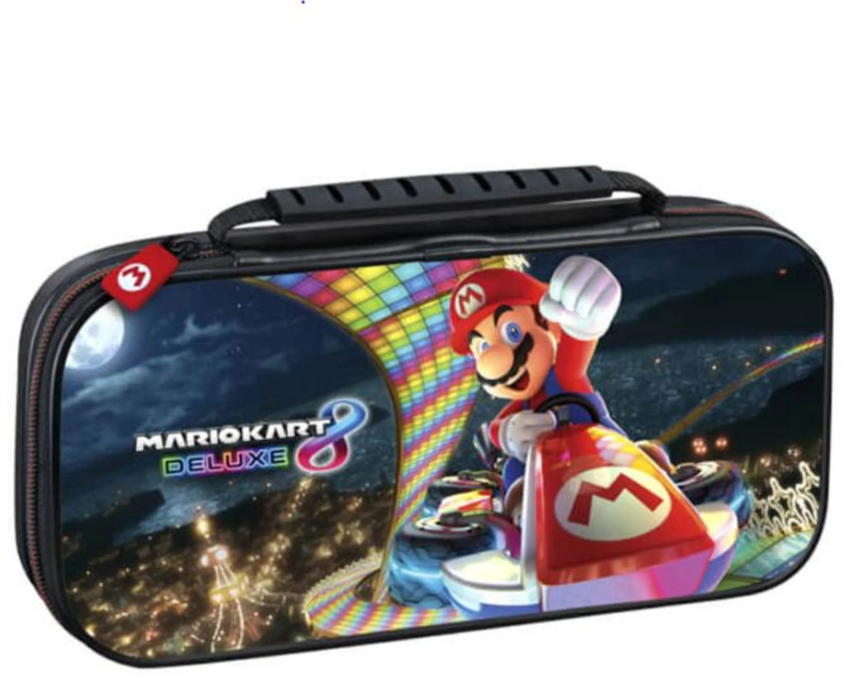 این کیف مسافرتی به صورت خاص و با طرح Mario Kart طراحی شده است. Travel Case نینتندو سوییچ محافظت خارجی فوق العادهای برای کنسول شما فراهم کرده و در عین حال با وجود لایههای مقاوم و ضد خش در داخل و همچنین یک دسته برای حمل کنسول، از بروز هرگونه آسیب در داخل و خارج از کیف به کنسول، جلوگیری میکند.