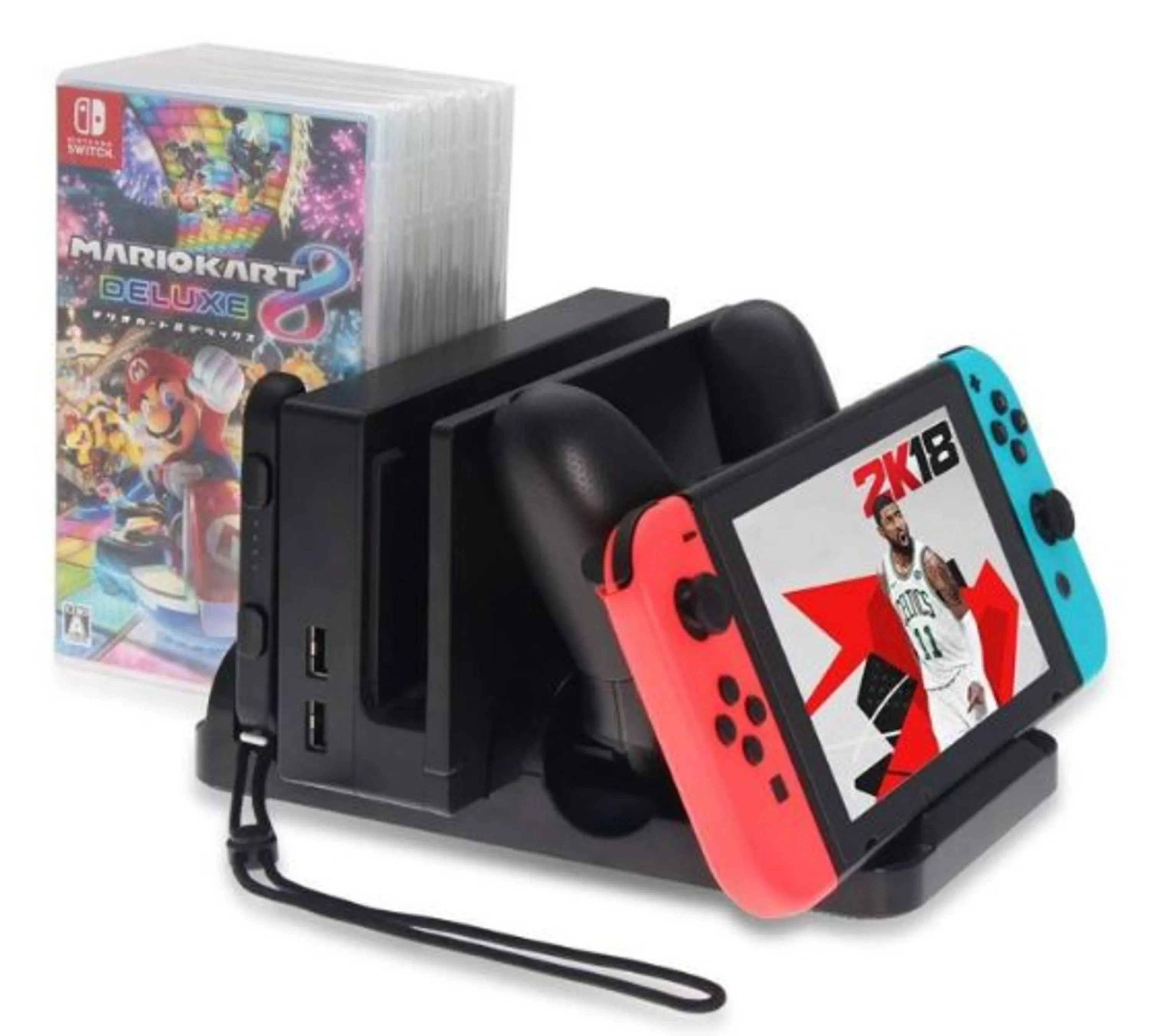 ,Multi-functional design,built in 1 switch console and 6 game card storage slots.Charge your switch Pro controller and Switch console at the same time