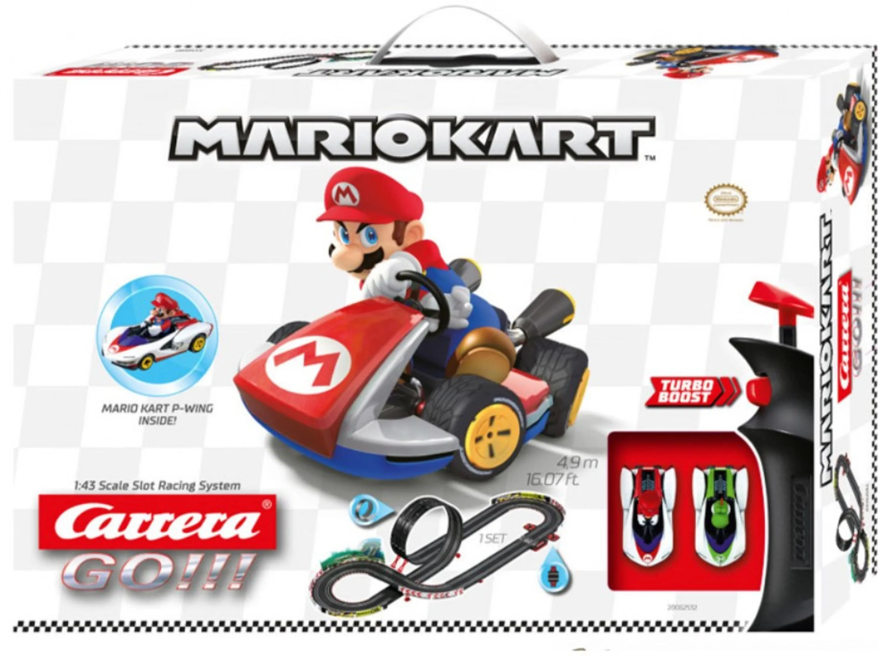 با پیست مسابقهای Carrera میتوانید با دوست خود، روی یک پیست مینیاتوری با دو کاراکتر ماریو و یوشی از بازی Mario Kart مسابقه دهید. این اسباب بازی شامل یک پیست مسابقه به طول 4.9 متر است که باید در ابتدا آن را سر هم بندی کنید.
