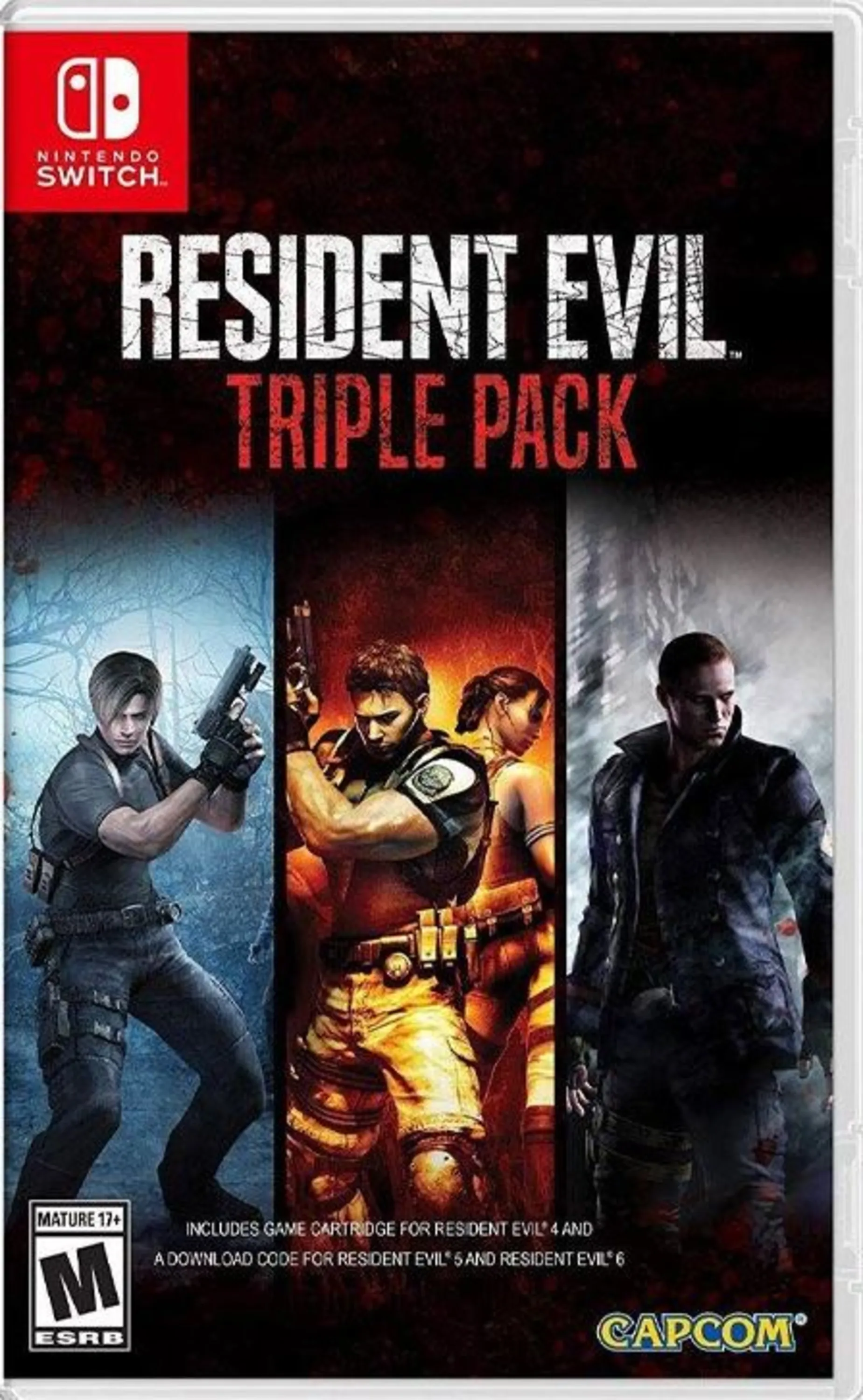 با خرید پک سهگانه Resident Evil، سه عدد بازی Resident Evil شامل بازی Resident Evil 4، بازی Resident Evil 5 و بازی Resident Evil 6 را دریافت خواهید کرد و آنها را همواره روی کنسول نینتندو سوییچ خود، همه جا به همراه خواهید داشت. همچنین، در این پک تمام DLCهای هر سه بازی نیز گنجانده شدهاند. بازی Resident Evil 4 نه تنها سری Resident Evil، بلکه ژانر وحشت را به طور کامل متحول کرد. در دو بازی Resident Evil 5 و Resident Evil 6 نیز میتوانید به صورت دونفره با دوستان خود بازی کنید.