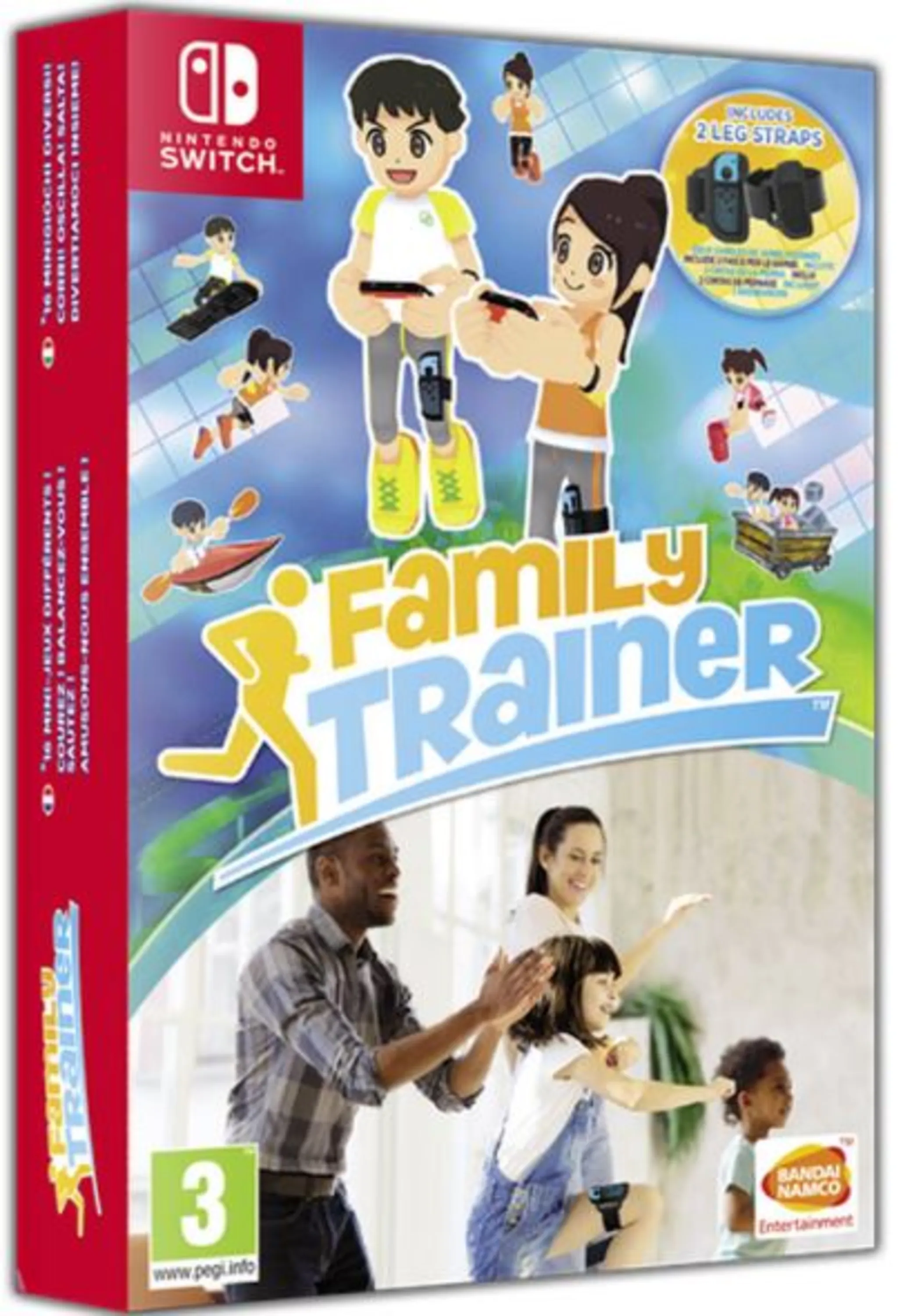 بازی Family Trainer مجموعهای از بازیهای کوچک ورزشی و حرکتی برای تمام اعضای خانواده است، تا در کنار ورزش کردن، دور هم سرگرم شوید. این بازی همراه با دو عدد کش دور پا عرضه میشود و میتوانید با قرار دادن جوی کان در این کشهای دور پا، بازیهای حرکتی با پا را نیز انجام دهید.