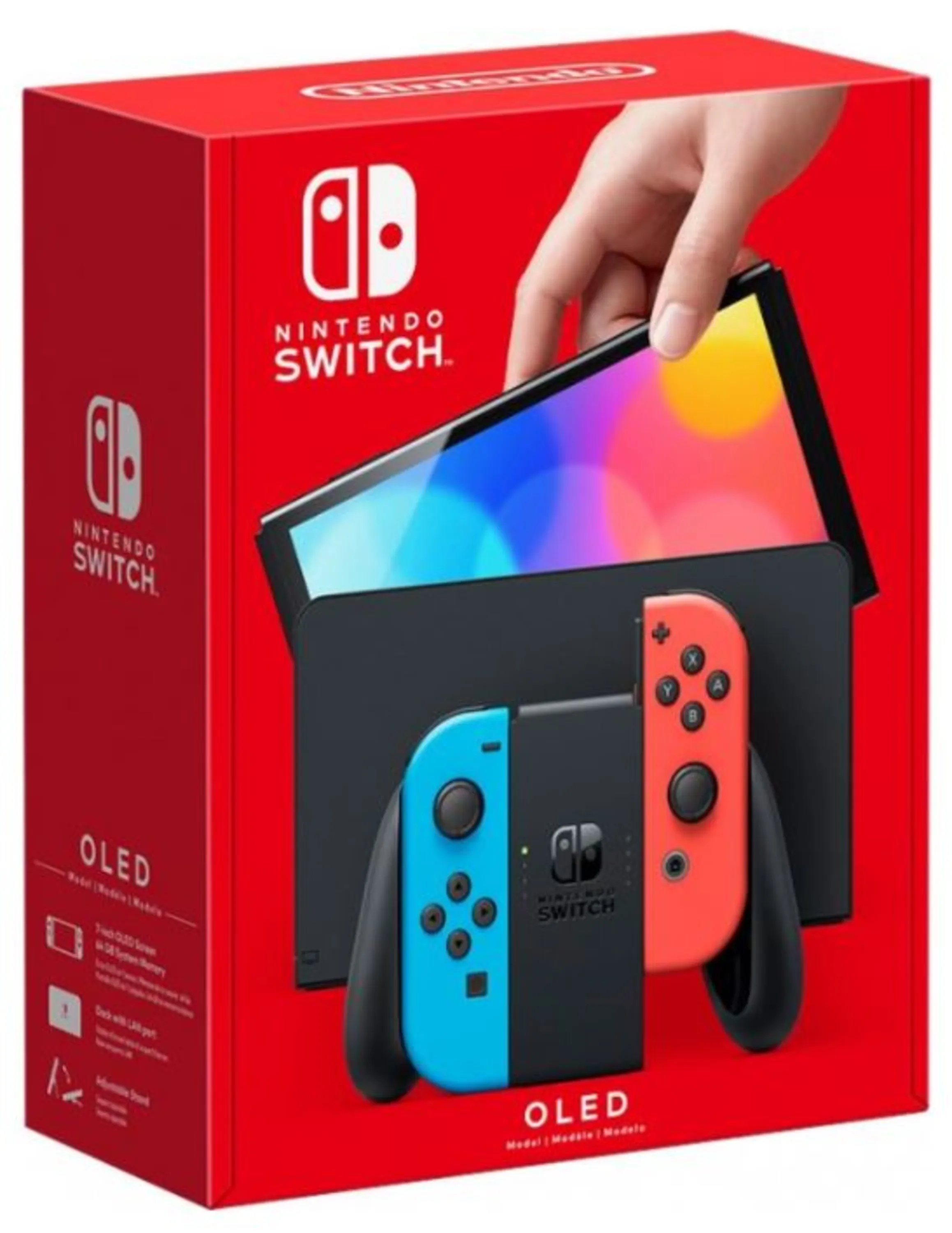 مدل OLED دارای صفحه نمایش 7 اینچی است که نسبت به مدل اولیه، ارتقا قابل توجهی است و یکی از انتقادات وارد به نینتندو سوییچ را رفع میکند.گوشههای این کنسول کمی انحنا دارند و بدنه آن از پلاستیک مات ساخته شده است. مدل OLED در دو رنگ سفید و سیاه تولید میشود که رنگ سفید آن تنوع جذابی برای افرادی است که به خرید این کنسول علاقه دارند. با خریدن جوی کانهای رنگی، میتوان ظاهر این کنسول را جذابتر کرد اما در مجموع، نینتندو سوییچ با طراحی ساده خود، نمره قبولی را در طراحی دریافت میکند.