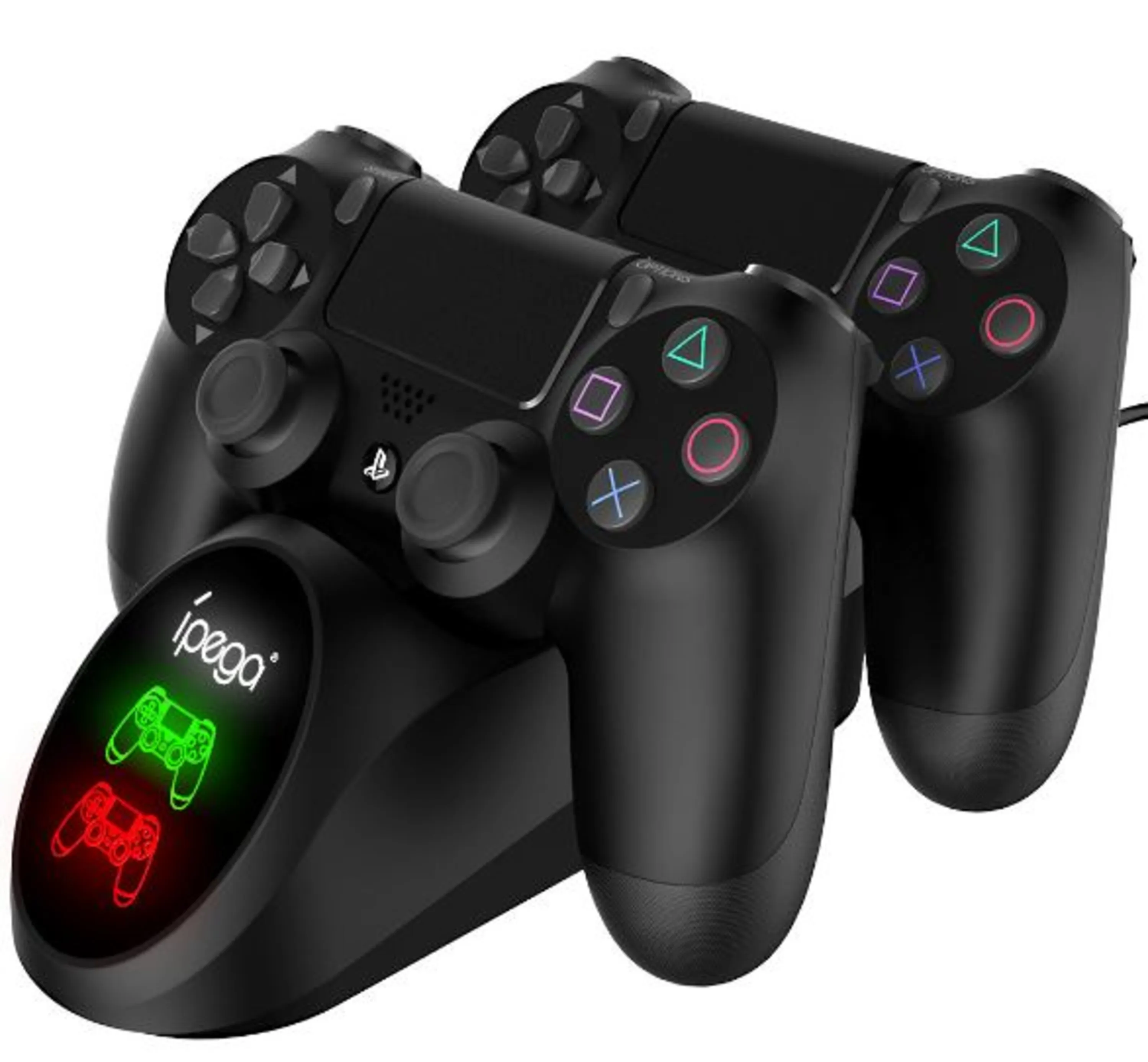 پایه شارژر ipega دارای دو عدد نشانگر LED برای نمایش میزان شارژ کنترلر است و در صورت شارژ شدن کنترلر، جریان برق را به صورت خودکار قطع میکند تا آسیبی به کنترلر شما وارد نشود. این کنترلر دو عدد دوال شاک 4 را در مدت زمان دو الی سه ساعت شارژ میکند.با پایه شارژر ipega شما میتوانید دو عدد کنترلر پلی استیشن 4 را به صورت همزمان شارژ کنید. کنترلر از پورت EXT به شارژر متصل میشود و میتوانید پایه شارژر را به کنسول یا منبع برق متصل کنید. این پایه شارژر دارای کفه ضد لغزش است و میتوانید آن را روی سطوح صاف و براق نیز قرار دهید.