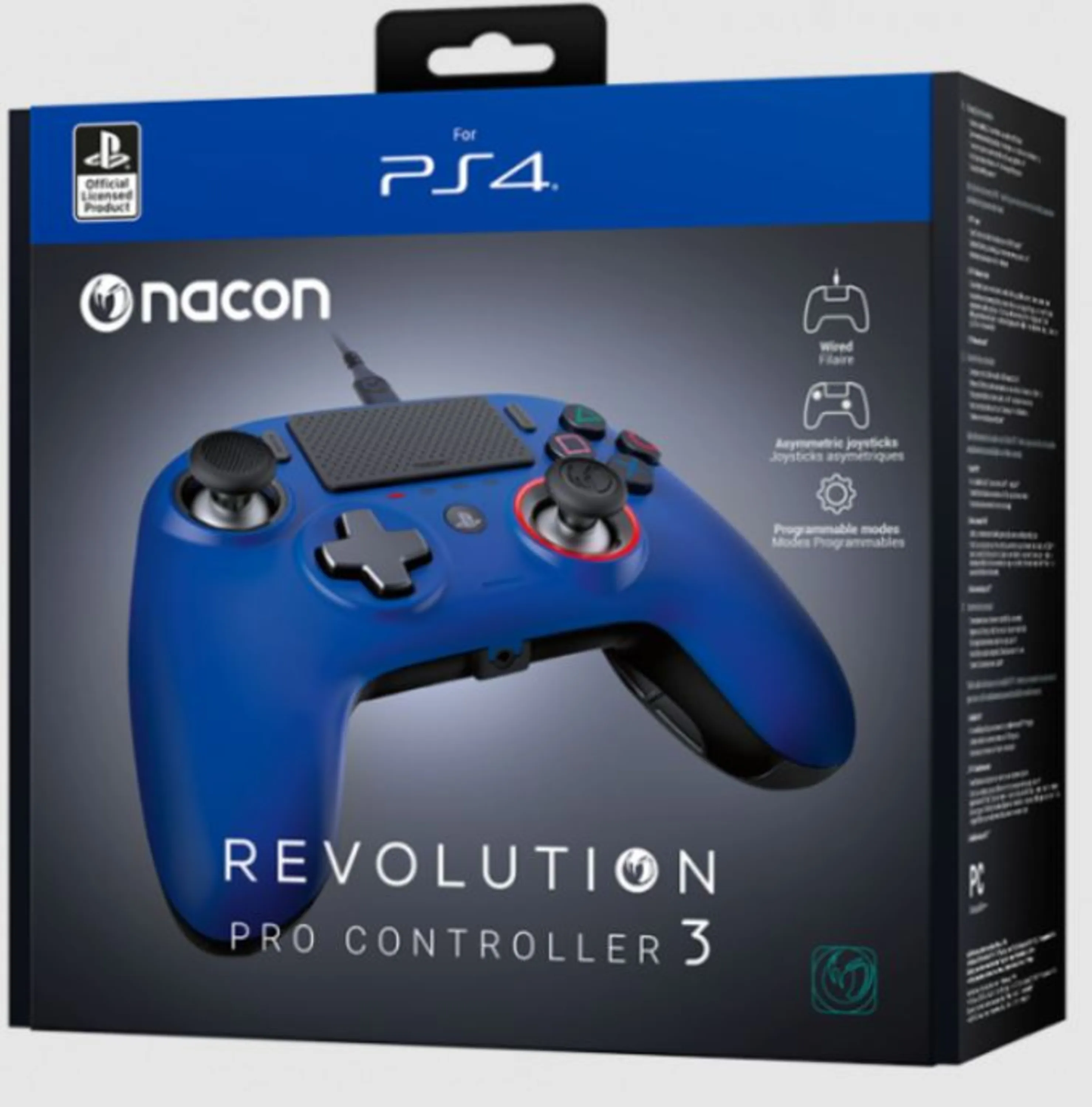 کنترلر Revoultion PRO 3 جدیدترین مدل از کنترلرهای حرفهای کمپانی Nacon است که برای راحتی گیمر طراحی شده است. این کنترلر دارای دستههای ارگونومیک با پد مخصوص برای راحتی بیشتر است. همچنین این کنترلر دارای یک نرم افزار کامپیوتری برای شخصیسازی و ساخت پروفایلهای مخصوص بازیها است. همچنین شما میتوانید با استفاده از وزنههای همراه با این محصول، وزن آن را به دلخواه خود تغییر دهید. این کنترلر دارای دو وزنه 10 گرمی، دو وزنه 14 گرمی و دو وزنه 16 گرمی است.