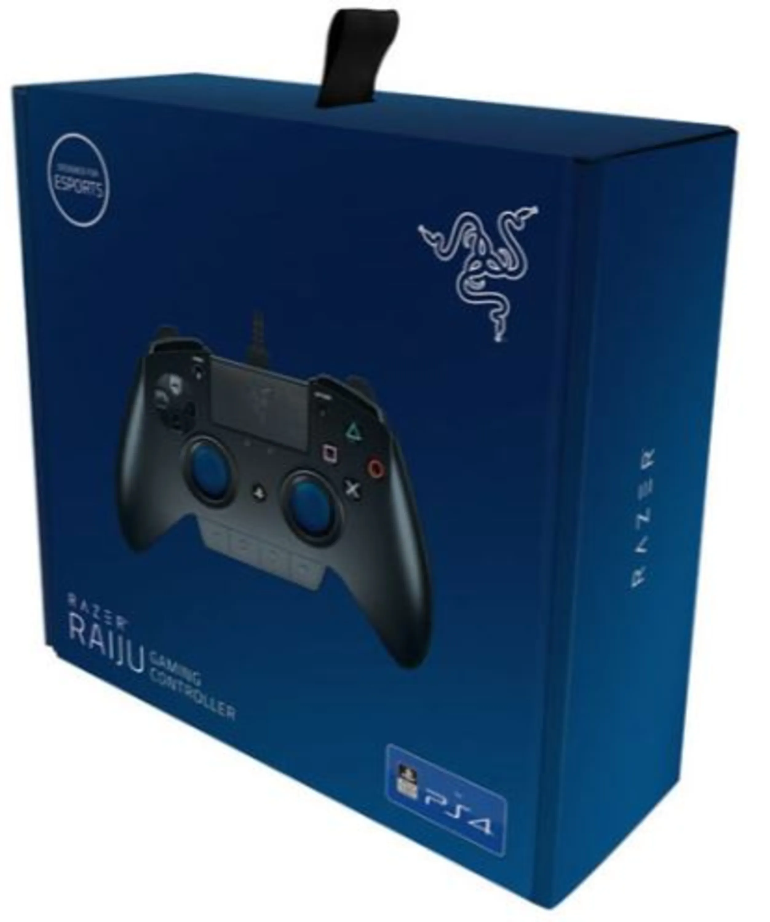 کنترلر PS4 ریزر، با نام Raiju شناخته میشود که نام خود را از موجود افسانهای ژاپنی گرفته است. این کنترلر از دو بامپر اضافی در بالای خود بهره میبرد و دو تریگر قابل جدا شدن نیز در پشت خود دارد. یک کنترلپنل در بالای کنترلر PS4 ریزر وجود داشته و دو پروفایل کاستوم (که امکان سوئیچ بین آنها با دکمههای جلویی فراهم میشود) نیز برای آن در نظر گرفته شده است.