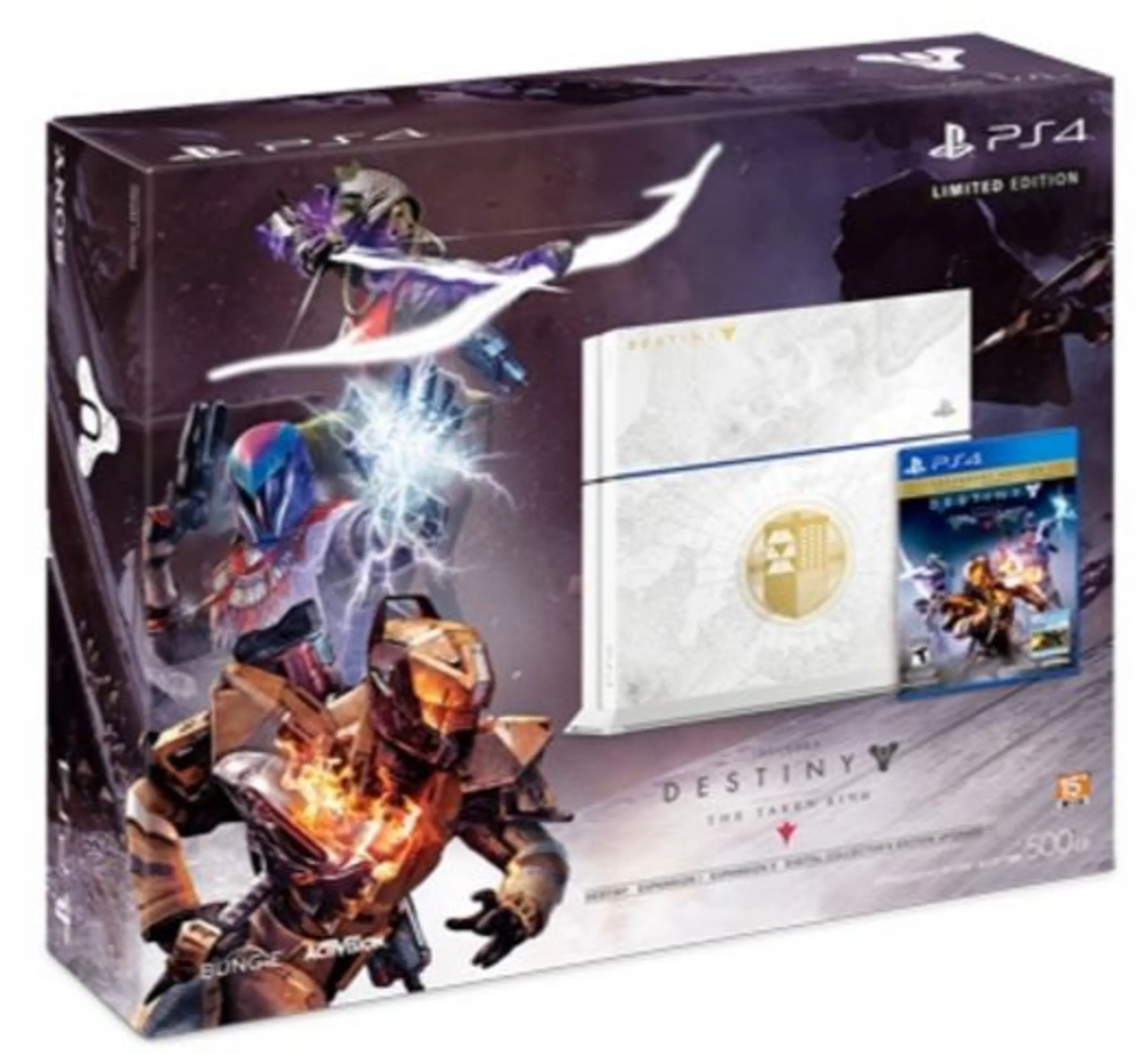 Includes: 500 GB PlayStation 4 System, 1 DualShock 4 Wireless Controller, AC Power Cable, HDMI Cable, USB 2.0 Cable, Mono Wired Headset, a physical copy of Destiny: The Taken King Legendary Edition, and a digital voucher for Destiny: The Taken King Digital Collector's Edition Upgrade