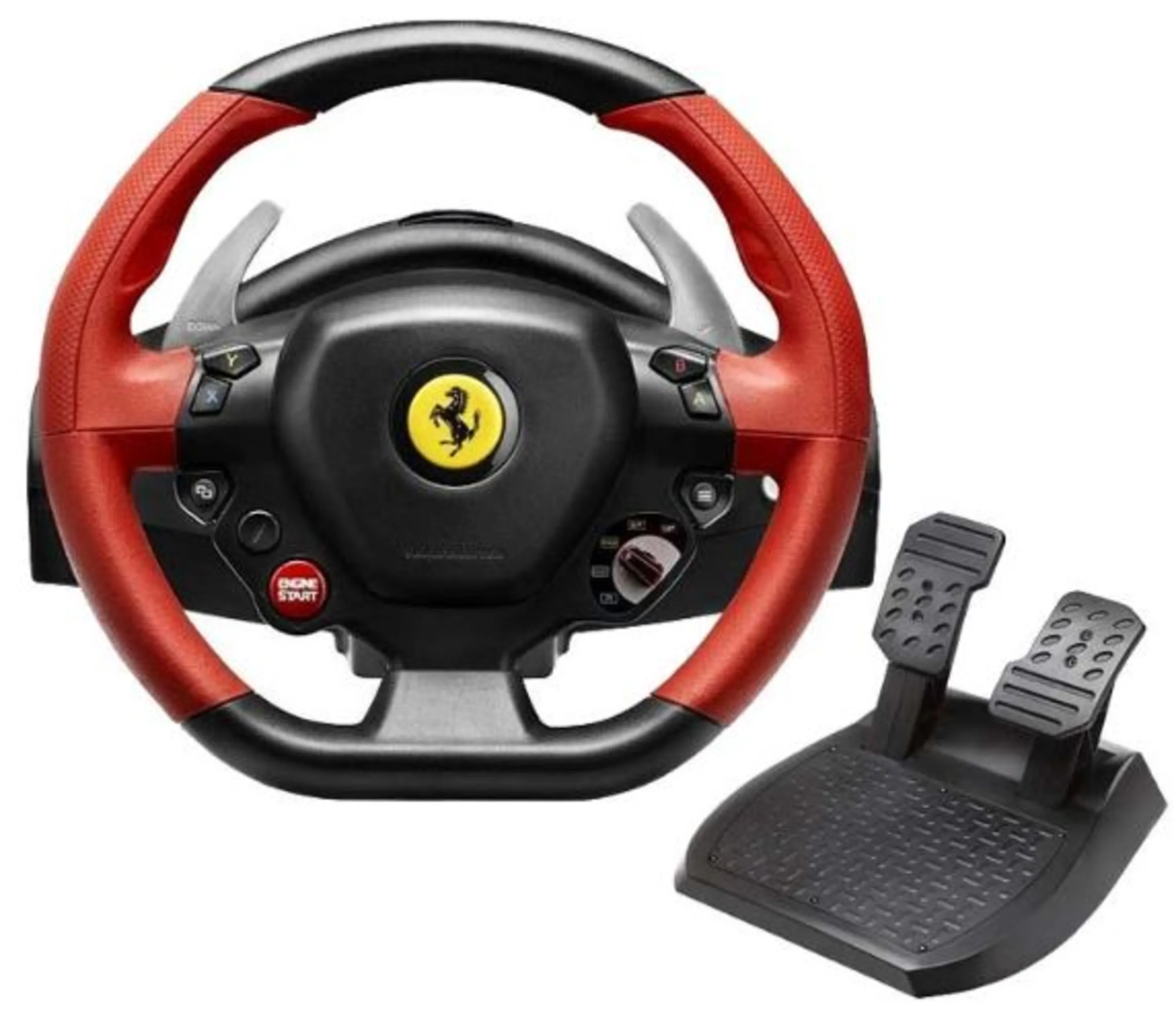 فرمان بازی Thrustmaster مدل Ferrari 458 Spider مدلی از فرمان خودروی فراری 458 اسپایدر است که با نسبت 7 به 10 برای کنسول ایکس باکس وان ساخته شده است. این فرمان 28 سانتی متر قطر دارد و دارای دو پدال فلزی تعویض دنده در پشت فرمان است و دو قسمت لاستیکی آن، راحتی این فرمان را تضمین میکنند.