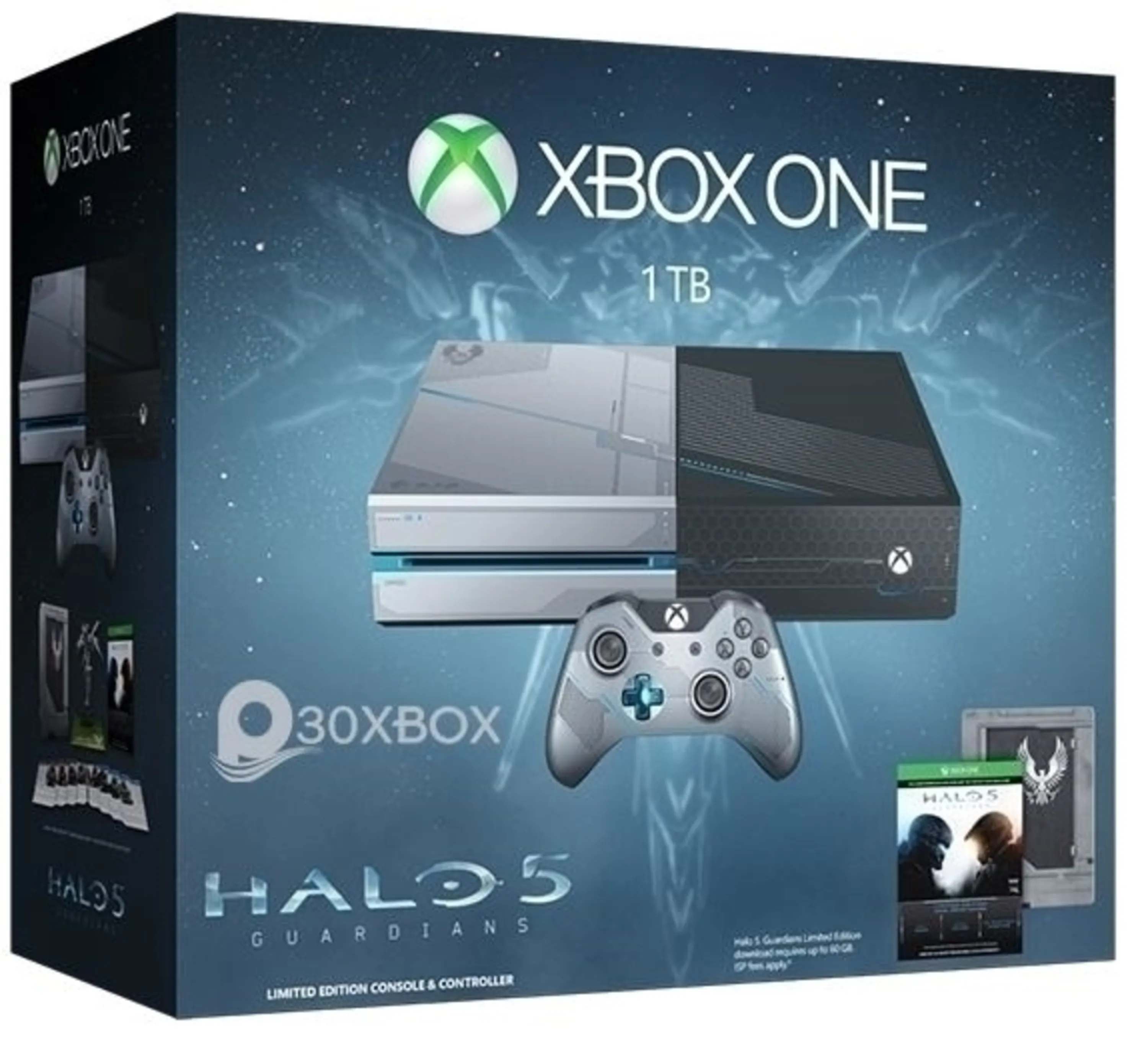 Includes: a 1TB hard drive custom Halo designed console, a uniquely designed Spartan themed Steel Book containing a full game digital download of Halo 5: Guardians, Warzone REQ Pack which includes 14 Premium Requisition packs to enhance Spartan combat, FOTUS-class armor, and a multiplayer emblem.