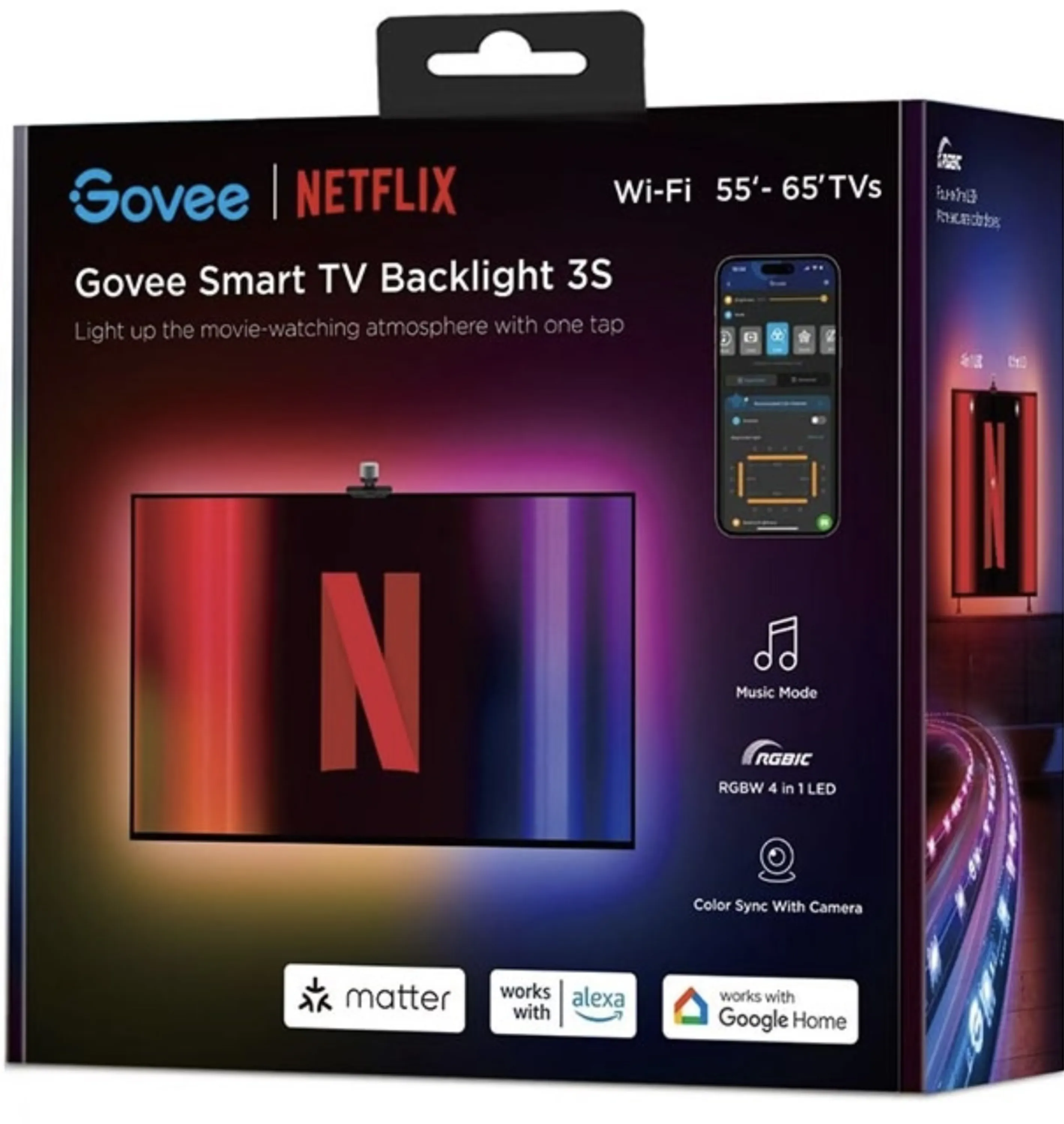 فناوری Govee Envisual, دارای حسگر هوشمند رنگ, با قابلیت همگام سازی ترکیبی ویدئو و صدا, دارای جلوه های RGBIC با رنگ های پویا, سفارشی سازی از طریق نرم افزار Govee Home, دارای 6 افکت نورپردازی سفارشی نتفلیکس, دارای دوربین هوشمند 1080p با قابلیت ضبط و اعمال رنگ, دارای 99+ حالت صحنه و 2 حالت ویدیو و حالت موسیقی