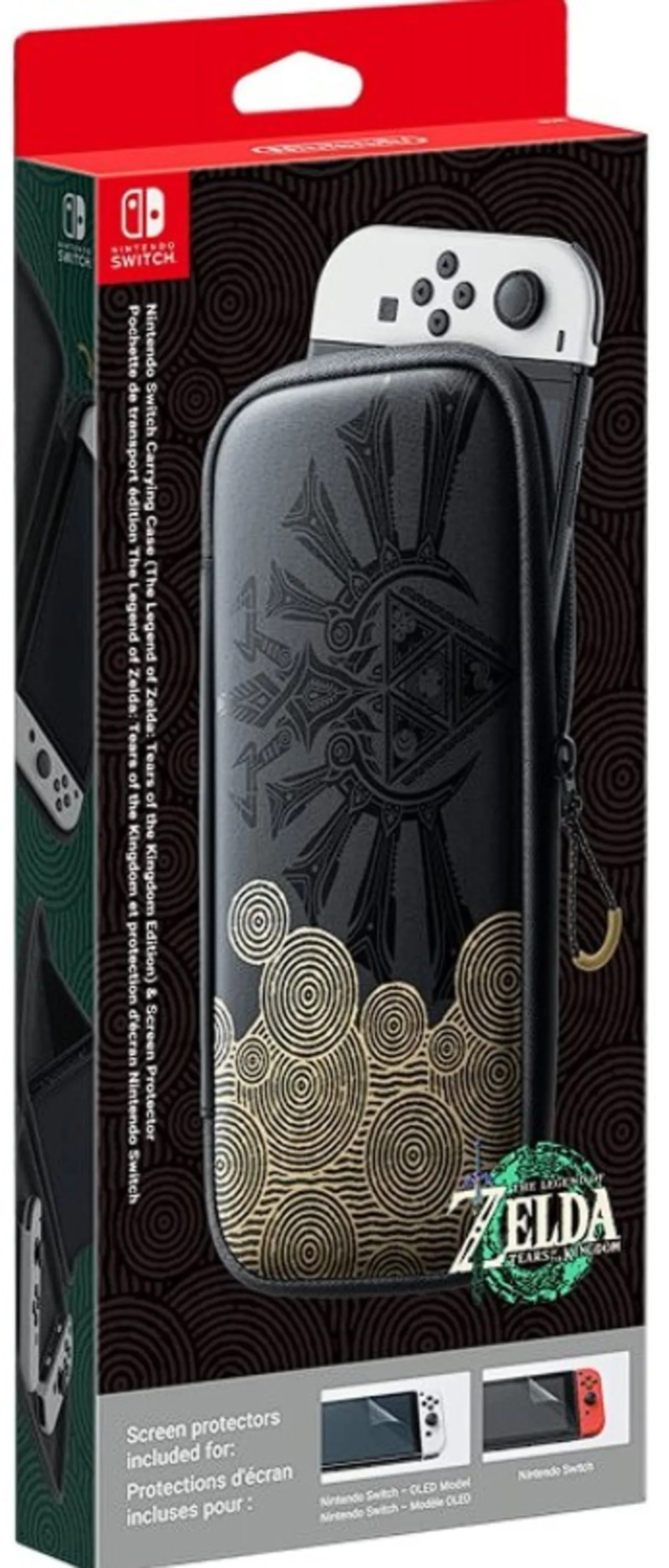 با خرید کیف نینتندو سوییچ، میتوانید کنسول نینتندو سوییچ خود را به همراه دو جوی کان و پنج کارتریج بازی را با اطمینان همه جا با خود داشته باشید. این کیف ضدضربه نیست اما دارای پدهای داخلی برای جلوگیری از آسیبهای جزئی است. همچنین این کیف شامل یک محافظ صفحه نمایشگر ضد خط و خش و ضد ضربه است. کیف نینتندو سوییچ توسط کمپانی نینتندو ساخته شده است و مزین به طرح ویژه بازی The Legend of Zelda: Tears of the Kingdom است. این کیف با نینتندو سوییچ معمولی نیز سازگار است.