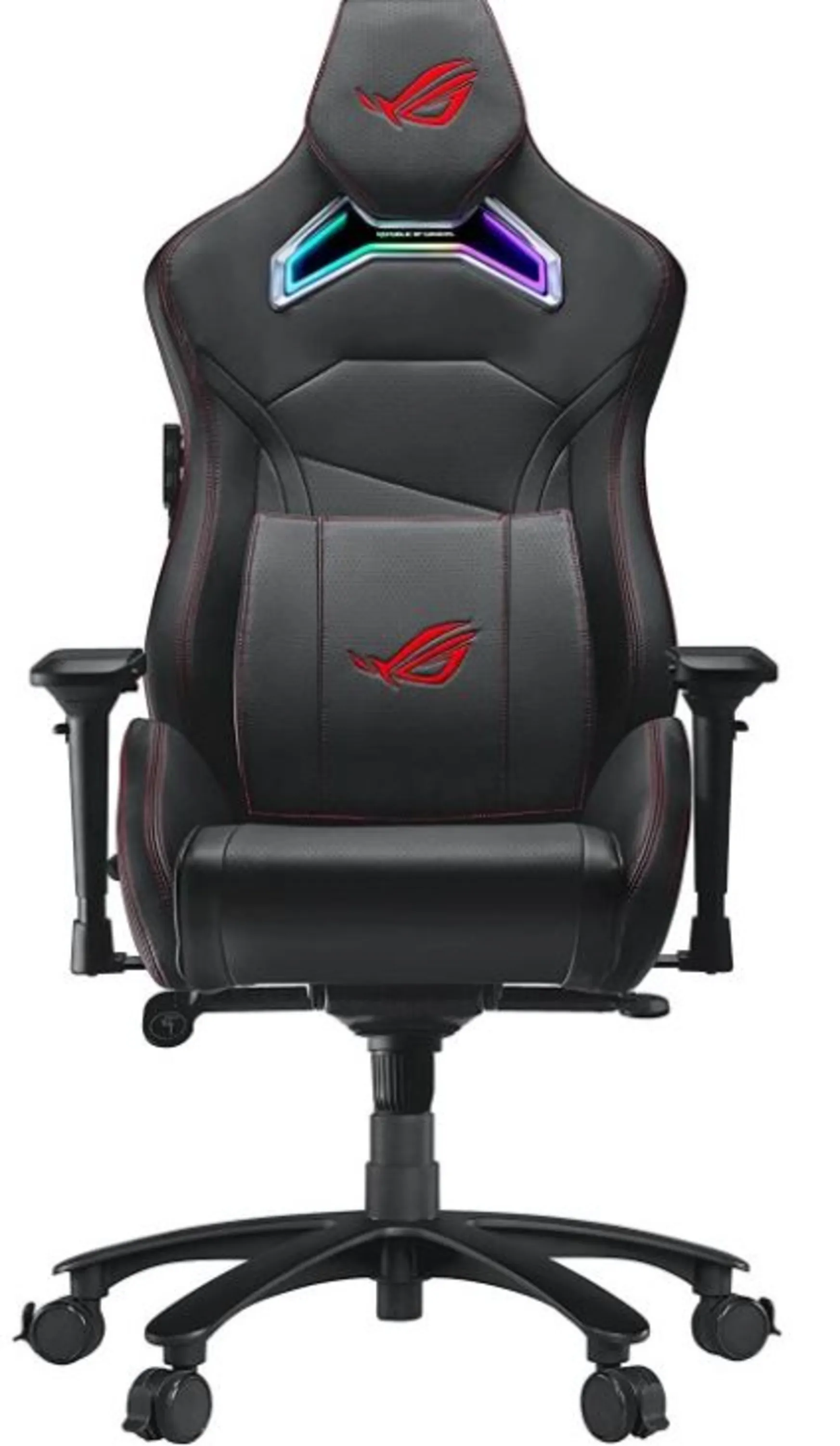 صندلی ROG Chariot RGB، حس و حال نشستن پش یک ماشین قدرتمند یا جنگندهای ویرانگر را برای شما تداعی میکند. این صندلی گیمینگ دارای تکنولوژی Asus Aura و طراحی منحصربفرد با ابریهای نرم پشت گردن و کمر است و دارای روکش چرم PU قابل تنفس برای عبور هوا و کاهش تعرق است. دستههای این صندلی دارای قابلیت تنظیم چهار بعدی هستند و بدنه و شاسی این صندلی دارای دوام فوقالعاده بالایی است.