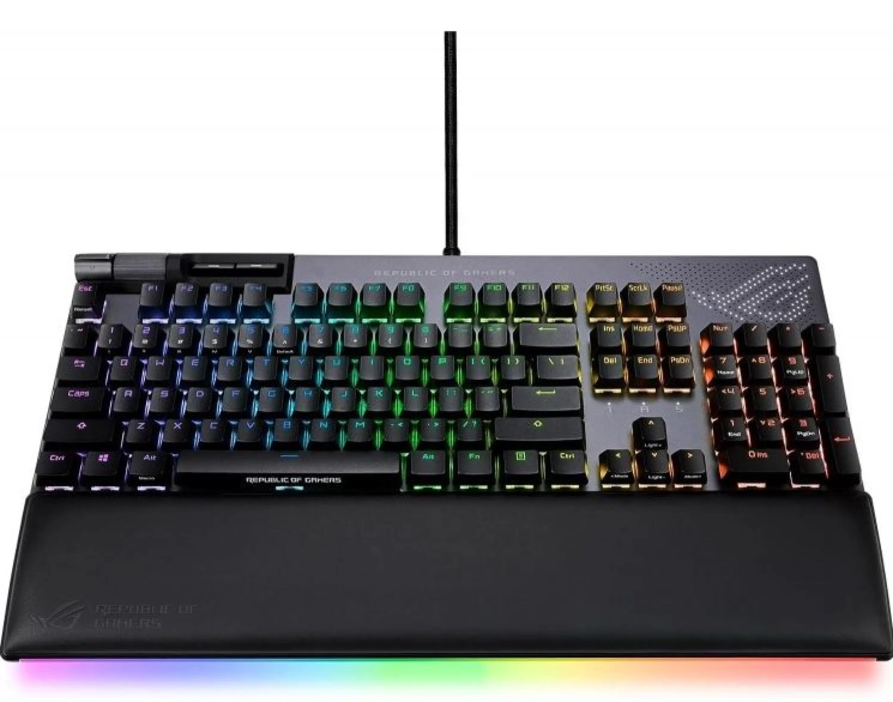 کیبورد ROG Strix Flare II Animate، یک کیبورد مکانیکی مجهز به نمایشگر AniMe Matrix، نرخ پاسخدهی 8000 هرتز، سوییچهای مکانیکی ROG NX قرمز قابل تعویض، دکمههای مخصوص محتوای صوتی و تصویری و محل قرار گرفتن مچ دست است.کیبورد ROG Strix Flare II Animate، یک کیبورد مکانیکی مجهز به نمایشگر AniMe Matrix، نرخ پاسخدهی 8000 هرتز، سوییچهای مکانیکی ROG NX قرمز قابل تعویض، دکمههای مخصوص محتوای صوتی و تصویری و محل قرار گرفتن مچ دست است.